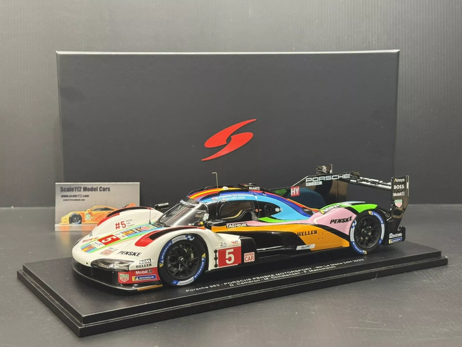 Get ready to race with this 1/18 scale Spark Porsche 963 LMDH #6 Penske Motorsport 24h Le Mans 2023 diecast car! Featuring a multicolor design and made from resin material, this display model is perfect for car collectors and racing enthusiasts alike. The vehicle is modeled after the Porsche Penske Motorsports racing team and comes with a boxed, unopened display model that is perfect for showcasing in any collection. This LeMans racecar is part of the LeMans series and was manufactured in China in 2023. It is a great addition to any collection and is sure to impress with its intricate details and high-quality construction. Whether you are a fan of Dane Cameron, Michael Christensen, or Frédéric Makowiecki, this Porsche Penske Motorsports racing team model is a must-have.