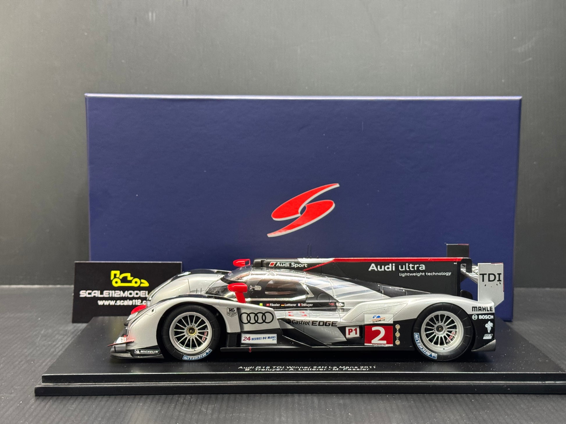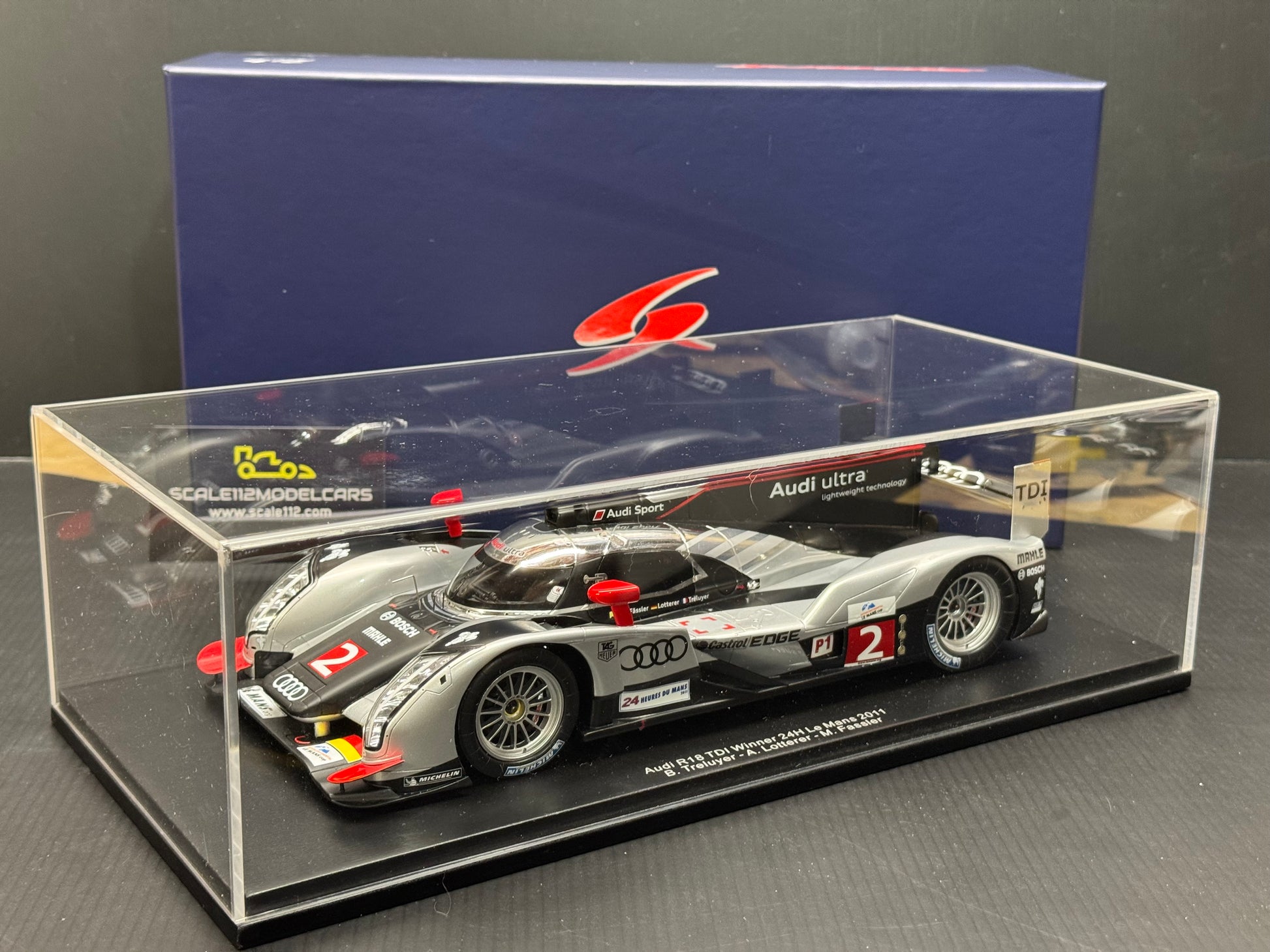 AUDI R18 TDI - WINNER LE MANS 2011 - MODEL CAR W/ DISPLAY CASE BY SPARK