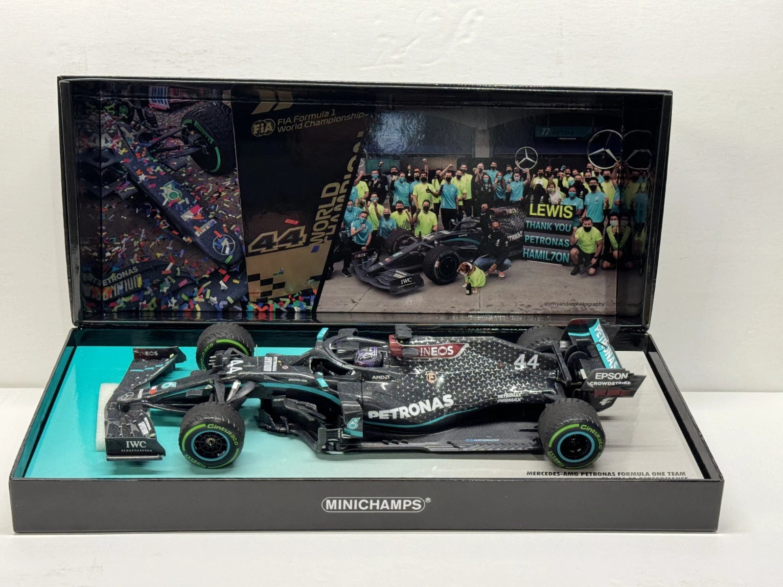 Minichamps 1/18 Mercedes F1 W11 Lewis Hamilton 2020 7x World Champion Box Set