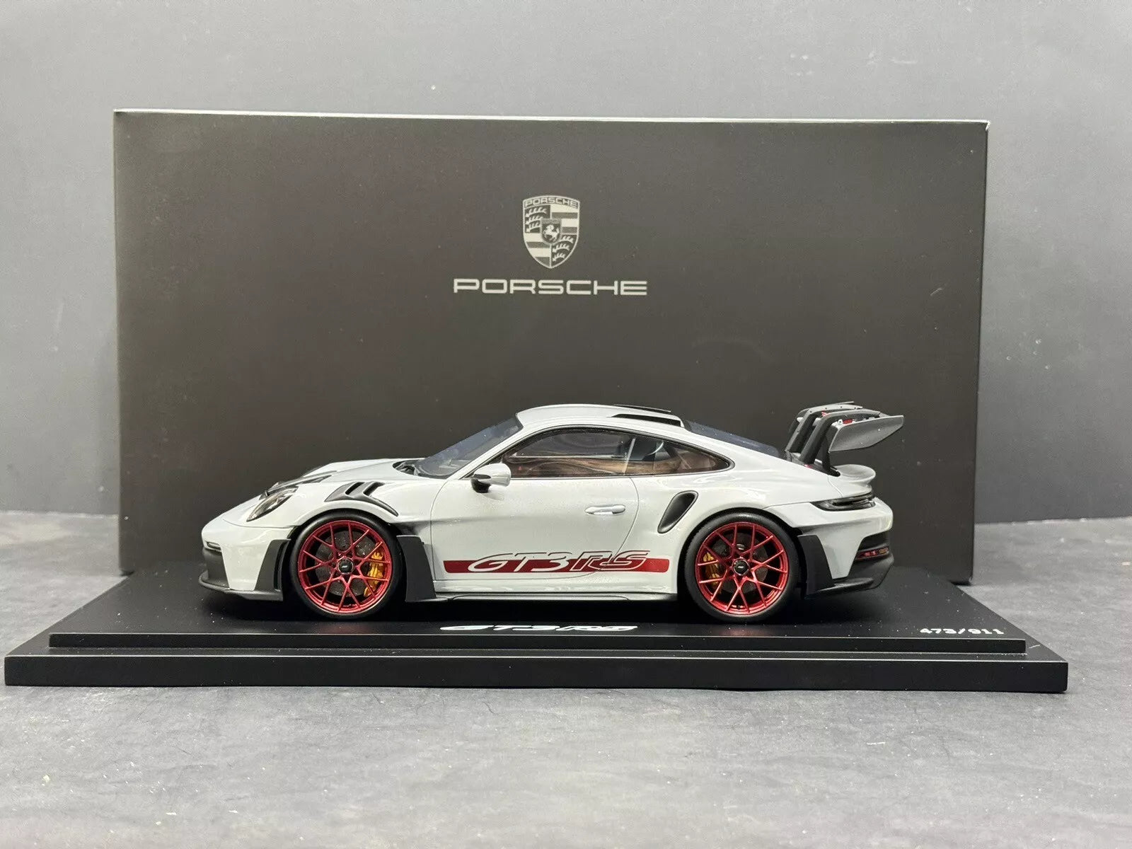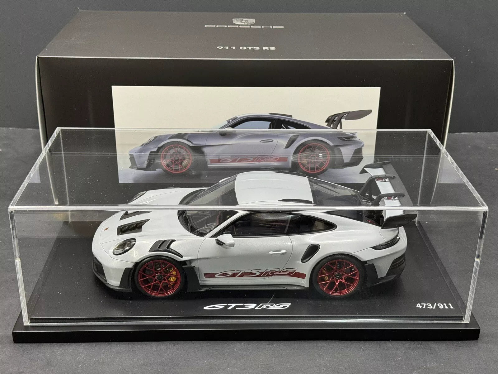 Porsche 911 992 GT3 RS Ice Gray w/ Display Case - Dealer Edition - 1/18 Spark