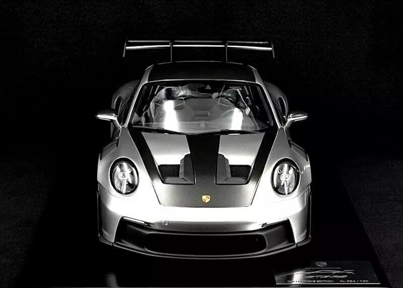 Gorgeous 1/12 Scale Porsche 911 992 GT3 RS Weissach Package Silver Metallic with Display Case - Porsche Dealer Edition. Extremely rare, limited to only 100 Produced.