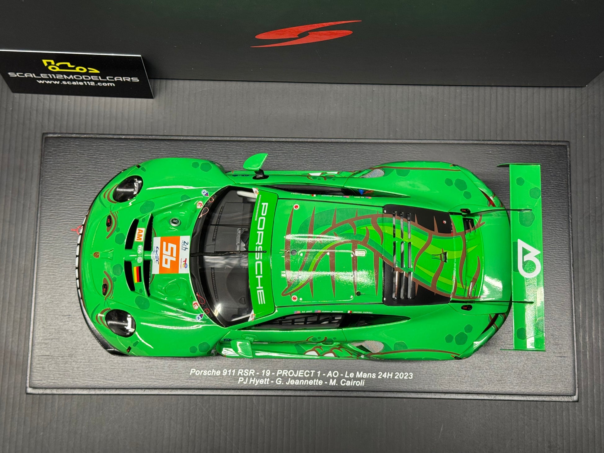 This Porsche 911 RSR #56 Lemans 24Hr. 2023 AO Racing "Rexy" 1/18 Scale by Spark with Display Case is a must-have for any car enthusiast. With its vibrant green color and intricate details, this model is a perfect addition to any collection. The special edition, limited edition, makes it a unique find that any racing fan would love to have.